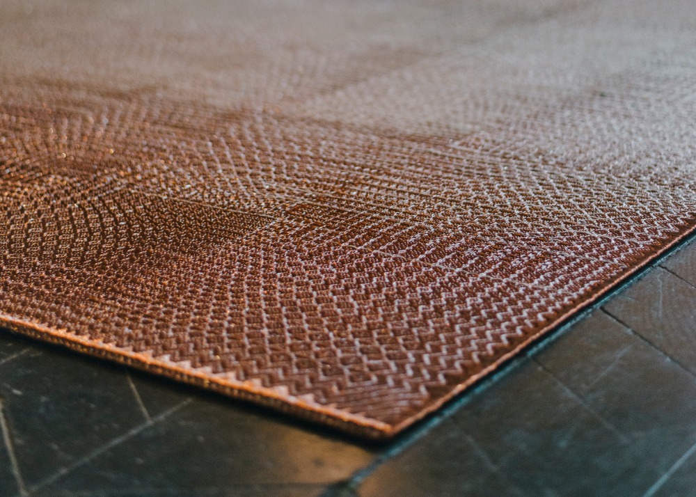 Urdido en estaño, cobre y nylon. Tramado en cobre, crin colombiano, nylon y fique crudo.